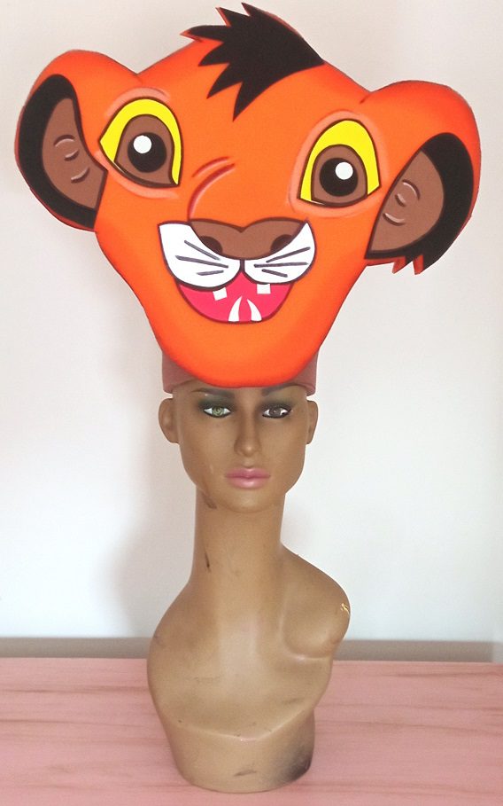 En Bonnetsfiesta realizan gorros de gomaespuma El Rey León, para todo tipo eventos como obras de teatro, musicales y carnavales.
